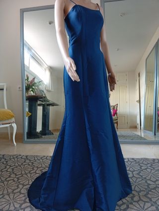 - Este diseño de Ana Torres Se caracteriza por ser un vestido largo de gala confeccionado en mikado , con una silueta entallada que se ensancha ligeramente hacia el bajo y terminado en una pequeña cola que aporta una elegancia extra al modelo , creado en un favorecedor tono azul noche - Presenta un escote recto con tirantes finos (tipo spaghetti). ANA TORRES es una firma de alta costura que cuenta con más de 500 puntos de venta distribuidos en más de 30 países. Nuestra firma se caracteriza por diseñar y producir íntegramente en España, realizamos confección a medida con amplitud de tallas. En nuestras colecciones de fiesta, cócte