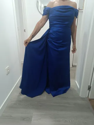Elegante vestido largo, ideal para bodas o eventos especiales. Precio de compra original 800€ - Diseño drapeado. - Corte asimétrico. - Escote Bardot.