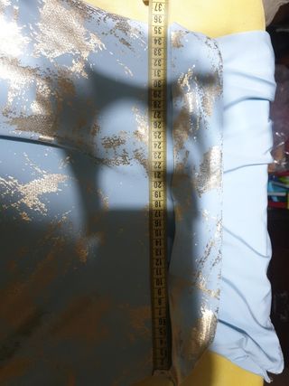 Vestido de shein. Es talla L pero arreglado a una M (38). Me costó 30 euros (se puede comprobar) y solo lo he utilizado para un rato en una boda. esta nuevo y tiene una tela muy cómoda y el tono azul es precioso. es por debajo de la rodilla