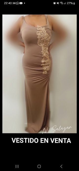 preciso vestido de fiesta licrado espalda al aire con raja en la pierna canutillo el color champán