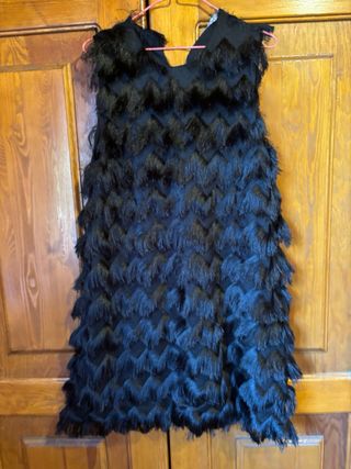Elegante vestido de terciopelo negro con un diseño moderno. Muy versàtil. Como pongo en las fotos, puedes usarlo para una fiesta o bien para el día a día acompañado de un jersey o una chaqueta. - Tejido suave y brillante. - Corte favorecedor. - Ideal para eventos especiales.