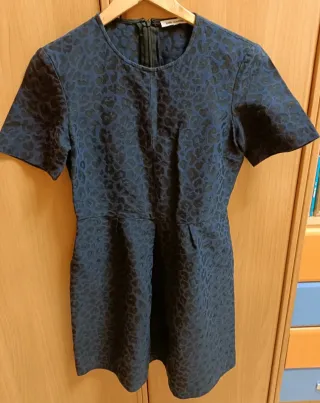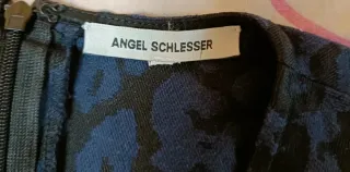 Elegante vestido de fiesta de la marca Angel Schlesser. Ideal para ocasiones especiales. - Diseño con estampado floral en tonos azul y negro. - Cremallera lateral para un ajuste cómodo y bolsillos en casa lado de la parte de abajo del vestido pongo fotos de medidas