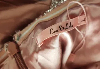 Elegante vestido de fiesta de las prestigiosas diseñadoras Eva & Lola, con un diseño que combina lentejuelas y tela satinada. - Cuerpo superior adornado con lentejuelas doradas. - Escote corazón preparado para no llevar sujetador (si se desea). - Doble Tirante de raso y lentejuelas. - Falda larga con pliegues y caída fluida. - Doble forro en todo su interior. -.Pesa bastante. Es una preciosidad...Usado sólo en un evento. OJO!!!!. PONE TALLA L PERO EL PATRONAJE CORRESPONDE A UNA TALLA M.
