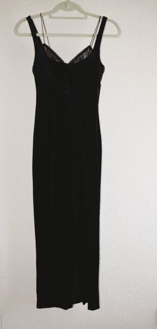 VESTIDO LARGO TERCIOPELO NEGRO ZARA XS