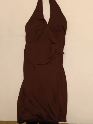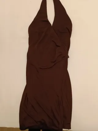 Precioso vestido de fiesta largo, color marrón, corte palabra de honor. Ideal para una ocasión especial. Restos de tienda de boutique, queda muy elegante, solo quedan dos de esta talla, precio anterior 65 euros. Con chal y elástico. - Diseño elegante y sofisticado. - Caída fluida y favorecedora. - Tejido suave y de calidad.