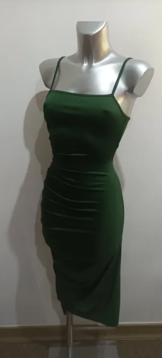 Uso sólo un rato ⚜️ Vestido diseño ajustado (bodycon) que realza la figura Se viralizó y rápidamente se agotó como "Shein Versus Zara" Escote recto, tirantes finos y abertura lateral a medio muslo. Detalle de fruncido drapeado frontal hacia lateral que ayuda a disimular imperfecciones y crea una silueta elegante. Talla-XS (al contener elastano da perfectamente para talla: S 🚛 Envíos 24h o antes 🔺 Descuentos Especiales Junto a Otros Artículos