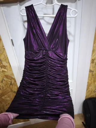 Vestido morado brillante fruncido