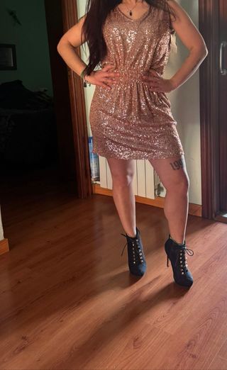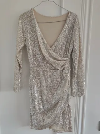 Vestido de fiesta corto con lentejuelas brillantes. Ideal para eventos especiales. Marca reactivo moda - Diseño con manga larga. - Acabado con lentejuelas. El precio es de 8 euros cada uno