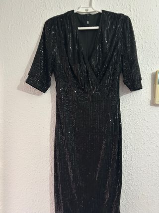 Vestido de fiesta con un diseño brillante y elegante. - Detalles de lentejuelas plateadas. - Diseño con escote en V. - Tejido ligero y cómodo.