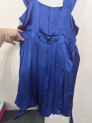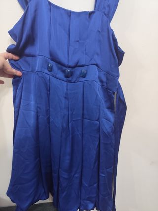 Vestido de raso color azul. Largo desde la sisa 56 cms. Es muy bonito y queda genial. Puesto sólo una vez.