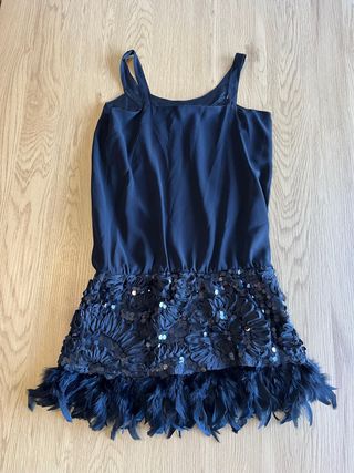 Vestido negro plumas fiesta