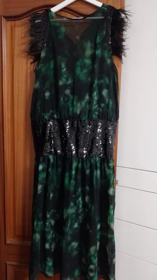 Vestido fiesta lentejuelas y plumas Talla XL