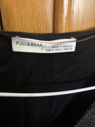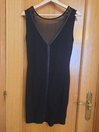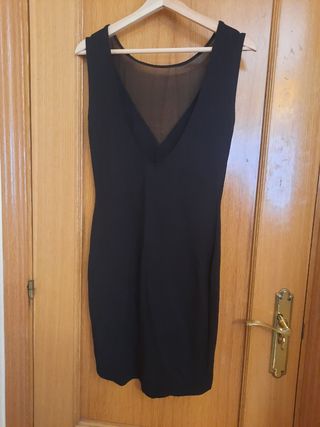 Vestido negro de fiesta ceñido de pull and bear. Escotado y con espalda descubierta. Es muy elástico. Talla L.