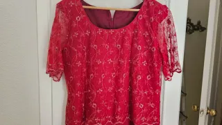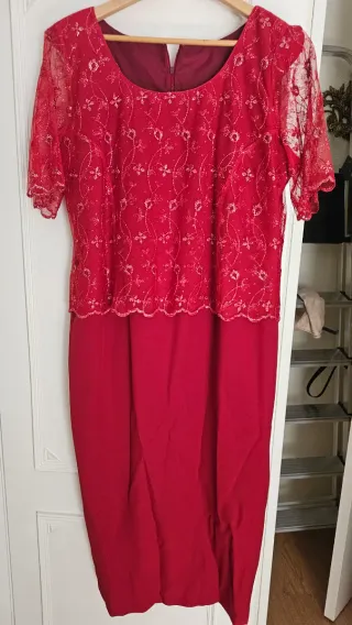 Vestido de fiesta rojo/granate con encaje.