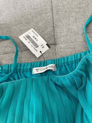 Vestido de fiesta de la marca C. Serrano, talla T.2. Es un vestido sin estrenar. - Diseño de tirantes. - Tejido de tul. - Color turquesa.