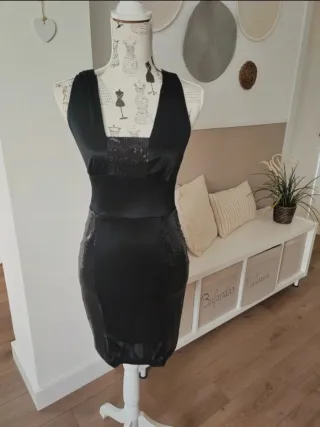 Vestido de fiesta con pequeñas lentejuelas. Incluye forro para que no se pegue al cuerpo. Comprado en Cortefiel.