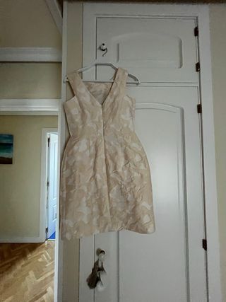Vestido de fiesta beige y blanco
