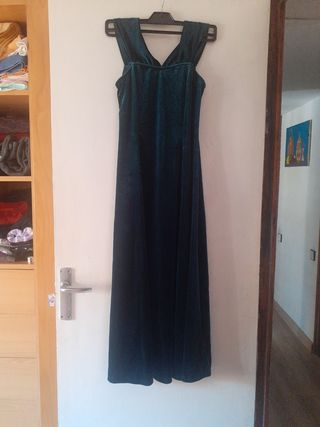 Precioso vestido de fiesta de terciopelo. Es de color verde oscuro y tiene un diseño elegante y favorecedor. MARCA SHEIN - Escote pronunciado. - Sin mangas. - Largo midi. - Perfecto para una ocasión especial.