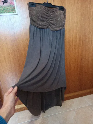 Precioso vestido de fiesta, palabra de honor, ideal para una ocasión especial. Utilizado solo en 2 ocasiones. Viene también con el chal de conjunto (La talla pone en la etiqueta L pero yo utilizo una S-M)