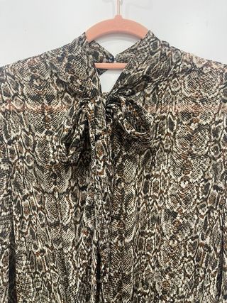 Usado una vez, gasa con dibujo serpiente, lazada en cuello. Ideal fiesta. Talla L de Zara