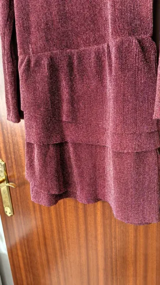Vestido fiesta de la marca Promod, en talla 38. Escote cuadrado, cremallera en la espalda. Color marrón/burdeos oscuro. Usado 2 veces. Hago lotes si te interesan varios artículos del perfil.