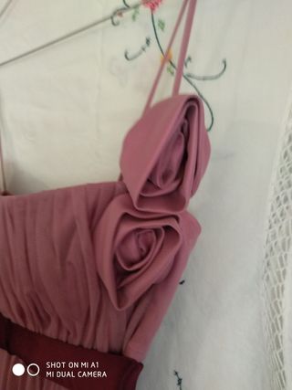 Precioso vestido para fiestas, ideal para ocasiones especiales. ✨ - Escote en pico. - Tirantes finos. - Tejido brillante.