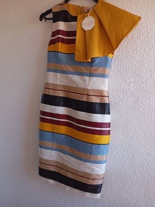 Vestido de marca Purificación Garcia para una comunión o boda . Por fuera tela raso ,lleva forro interno ,de muy buena calidad.Solo puesto una vez para una boda.Talla S-M(38-40).(Ver fotos con medidas),o preguntarme.