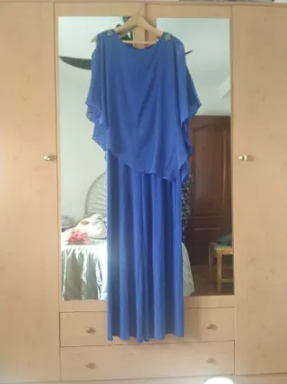 Elegante vestido de fiesta con chaqueta a juego, las últimas dos fotos es el mismo modelo, pero para que veas cómo es el primer Vestido solo queda el color morado el de la primera foto No pierdas la oportunidad de comprarte un vestido precioso nueva, a estrenar y muy elegante de lo contrario tendrías que ir en tiendas y pagar el precio que marca cada etiqueta Precio no negociable, no se aceptan devoluciones de ahí su precio tan reducido Por favor, solo gente interesada no marear - Talla 48-50. - Color morado. - Diseño con cuerpo drapeado y falda larga. - Chaqueta corta con manga larga y textura. - Cierre de la chaqueta con broche.