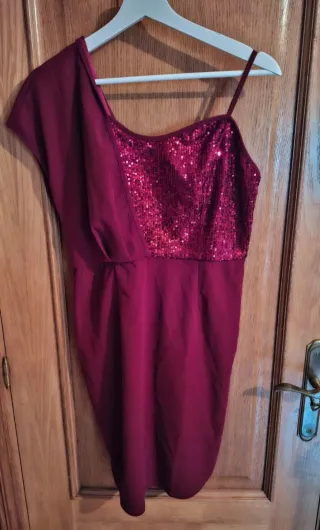 Vestido corto satén burdeos fiesta S