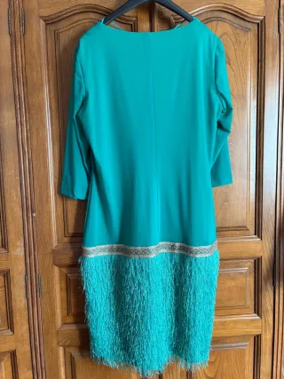 Vestido verde fiesta con flecos