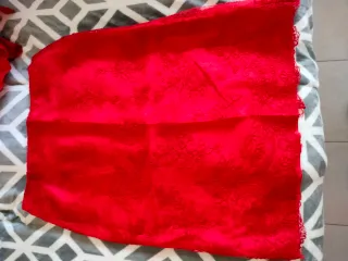 Elegante conjunto de dos piezas para eventos especiales. La parte superior está adornada con detalles brillante. - Parte superior con manga corta y escote redondo. Contorno pecho 100 - Falda recta, tipo pañuelo, ( cruzada ( Cintura desde 80 a 90. Largo 83 - No incluido colgante
