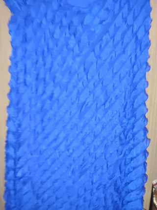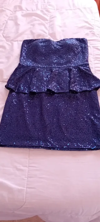 Vestido ajustado con un diseño brillante y detalles fruncidos. - Tirantes finos. - Forro interior azul. Queda perfecto y la purpurina no se queda pegada al cuerpo