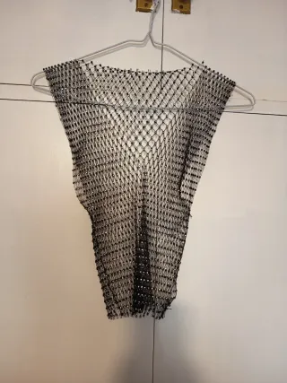 Top de fiesta con un diseño llamativo y moderno. - Tejido metalizado con hilos dorados y plateados. - Diseño de malla. - Talla única.