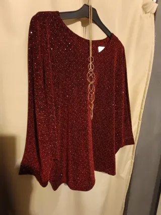 nuevo vestido de fiesta largo con Escote en V con detalle de encaje color Burdeos vino 🍷 con brillito Tallaje L 40 mujer