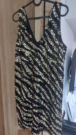 Vestido corto negro de fiesta, mango, lentejuelas doradas, nuevo.