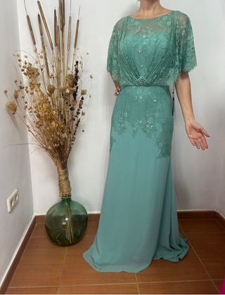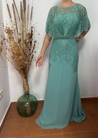 Vestido de fiesta color verde azulado