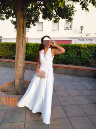 Elegante vestido largo de fiesta en color blanco. Ideal para eventos especiales. - Diseño con escote multiposición - Corte fluido y favorecedor.