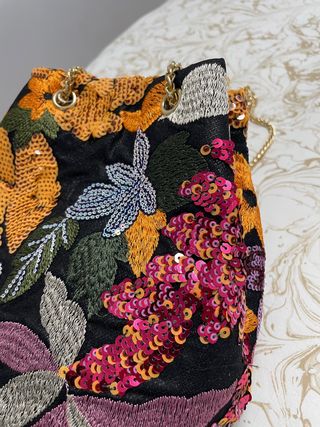 Precioso bolso sin estrenar. Lo compré para ponérmelo con un vestido que luego no llevé. Tiene un montón de detalles y sirve para múltiples ocasiones