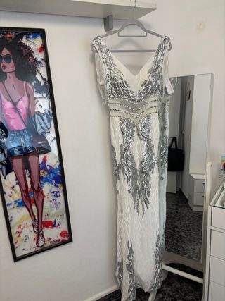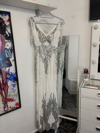 Vestido de fiesta blanco y plateado