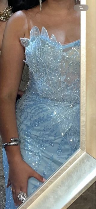 Vestido de fiesta azul y plateado