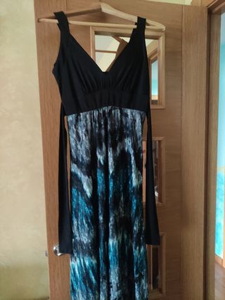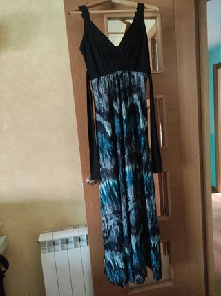 Vendo vestido de fiesta con accesorios zapatos de tacón fino número 38 ( como se ve en una foto ) bolso de mano o se puede llevar colgado también ya que tiene la cuerda por dentro pero no es de las que se puedan quitar y poner y el lazo para el vestido , el vestido queda muy bonito las medidas se ven en las fotos ,largo 1,26 desde el pecho y desde debajo del pecho 1,16 ,ancho de d bajo del pecho unos 35 centímetros el vestido se puede llevar con tirantes o se pueden meter dentro y llevar como palabra de honor y por un costado tiene cremallera