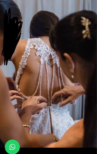 vestido de novia puesto dos veces, el dia de la ceremonia y despues para las fotos. Corpiño y espalda de encaje y pedreria. Uso talla 36 y de pecho una 85/90B y me venia ceñido, el largo de delante esta cortado para llevar converse planas y mido 1,68cm. PRECIO NEGOCIABLE, nuevo eran 1350€