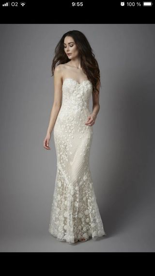 Elegante vestido de novia de Catherine Deane Talla 40 (12 Uk) - Diseño strapless con detalles florales bordados - Corte sirena. - Tejido de encaje y pedrería. - Sin la parte transparente de arriba; escote corazón