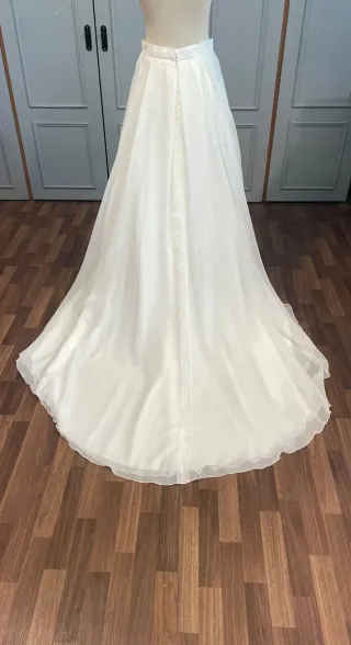 Falda de novia de la marca Niria. Un diseño elegante y vaporoso. - Tejido ligero y fluido. - Corte A. - Cintura marcada. Falda Nuria 80€ Sin etiqueta Medidas Cintura 76 Cadera 100 Largo 118