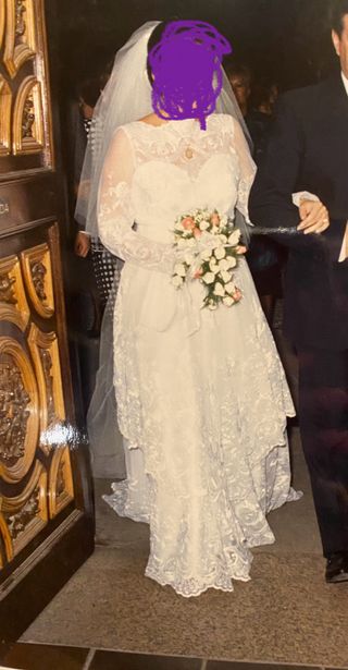 Vestido de Novia Talla S Encaje y Falda Larga