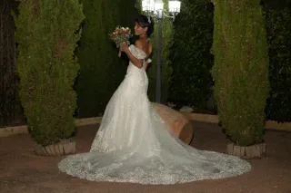 Vestido de novia modelo ALBIRA de Atelier bodas Madrid con corte de sirena en crepé bordado con pedrería. La falda sirena desciende de forma impecable y culmina en una cola larga decorada con encaje y pedrería, que aporta espectacularidad y movimiento a cada paso. Arreglado después de la boda por el mismo Atelier Bodas por lo que está nuevo. Las medidas son, Pecho 106 cm, Cintura 90cm y Cadera 116 cm aproximadamente. Yo uso talla L y mido 1,58cm. No tiene ni un año el vestido ya que me casé el 2 de mayo de 2025 y el vestido está guardado en su funda original de la tienda. Si necesitais más fotos o informacion hablarme sin problema.