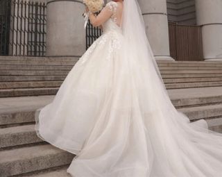 Elegante capa para vestido de novia, ideal para añadir un toque especial a tu look nupcial. Usado una vez el día de la boda. 🔹 Material: Seda de alta calidad, con una caída ligera y delicada que se mueve de forma mágica al caminar. 🔹 Medida: 3 metros con 20 centímetros de largo, perfecta para una entrada espectacular y unas fotos de ensueño. Capa comprada en Pronovias,si tienes alguna pregunta no dudes en consultar.