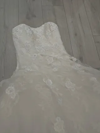Vestido de novia elegante, talla 40. - Diseño clásico y romántico. - Tejido de alta calidad con detalles de encaje. - Falda voluminosa con varias capas.