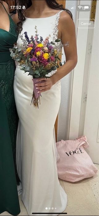 Vestido de novia (boda el 23/09/23) De HIGAR NOVIAS, vestido personalizado, puesto que de eligió la mezcla de varios modelos. Hecho a medida para una talla 36 y aproximadamente 1,65-1,70 de altura. Su precio fue de 1790 euros, se vende a 900 (a negociar) Se llevo a la tintoreria 3 dias despues de la Boda, està impoluto y limpio. Adjunto fotos, si teneis interès de mas fotos escribeme por privado