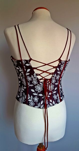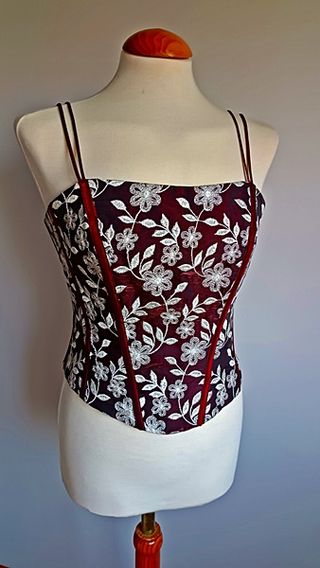 Corpiño bordado con hilo plata, confeccionado en tienda de novias. Talla 38, contorno cintura 75 cm.
